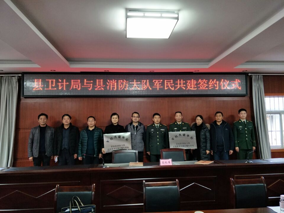 仪式上,县公安消防大队与县卫计局作为军民共建单位在仪式上签约。县委常委、县人武部部长杜少云、县民政局局长杨洪波为共建单位双方授牌。军民共建单位代表县公安消防大队教导员祝臣、县卫计局局长张晓芳分别作了表态发言,希望通过军民共建单位的建立,进一步加强交流与合作,实现互利共赢。
