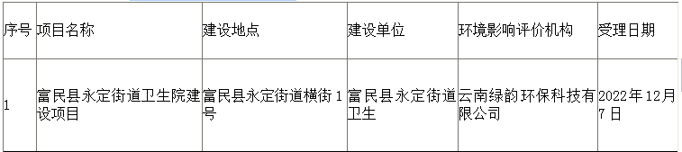 昆明市生态环境局富民分局关于富民县永定街道卫生院建设项目环境影响评价文件受理情况的公示