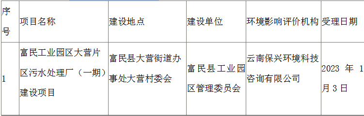 昆明市生态环境局富民分局关于富民工业园区大营片区污水处理厂(一期)建设项目环境影响评价文件受理情况的公示