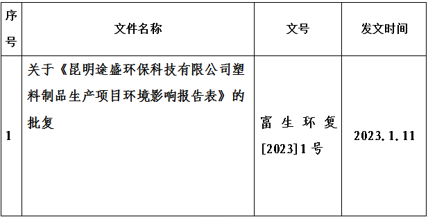 关于《昆明途盛环保科技有限公司塑料制品生产项目环境影响报告表》的批复 富生环复[2023]1号(盖章)