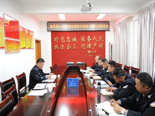11月21日下午,富民县公安局召开普法强基补短板专项行动工作推进会,七个派出所所长及县局普法强基办相关人员参会。会议由局党委委员、副局长王国虞同志主持。