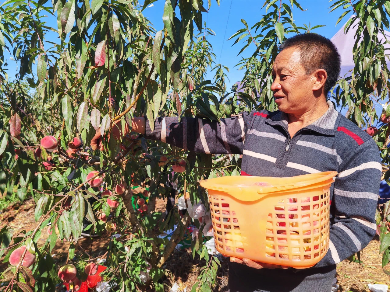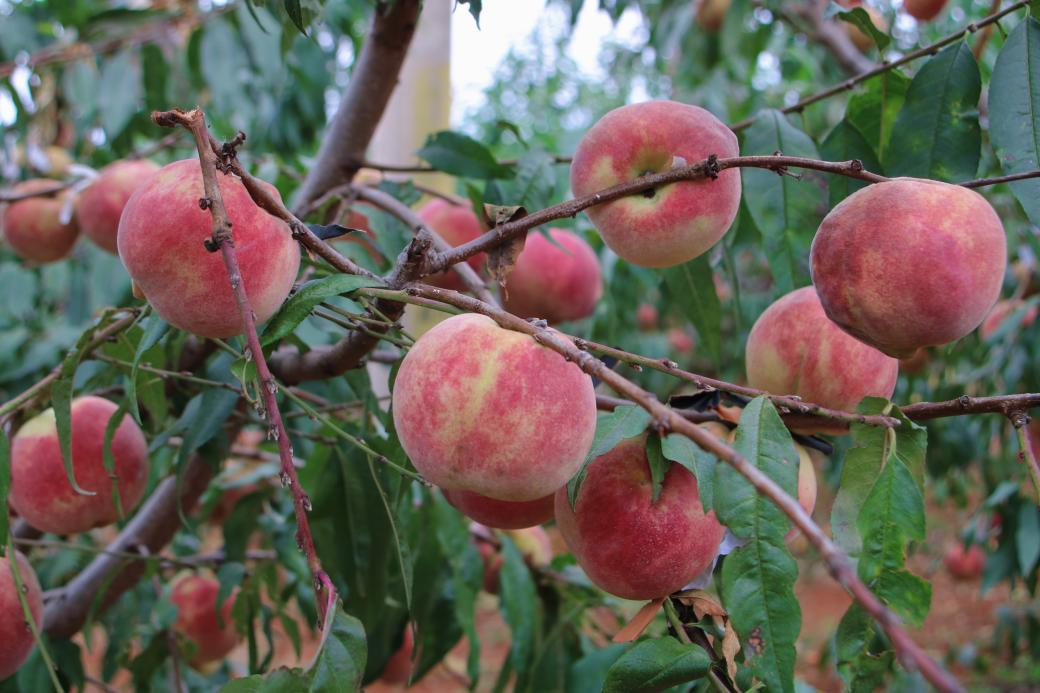 二是聚焦优势,盘活“资源”助增收。白石岩村委会地处云南省昆明市富民县永定街道东北部,属高寒山区,海拔2040米,阳光充足,土壤多为碱性红壤,得天独厚的自然环境造就了白石岩冬桃个大味甜、鲜嫩爽脆的口感。白石岩村党总支经过多番考察,充分发挥自然气候优势因地制宜发展冬桃产业,让冬桃成为白石岩村一张响亮的名片。2018年9月,白石岩村被富民县科协认定为冬桃科普示范基地;2019年7月,经中国绿色食品发展中心审核认证,白石岩冬桃符合绿色食品A级标准,并颁发绿色食品证书;2021年,白石岩村被认定为昆明市“一村一品”示范村;2022年申请冬桃种植产业商标2个,同时白石岩冬桃还获得绿色产品认证、有机产品认证和农产品地理标志。白石岩村村民以农业种植为主,为冬桃产业的发展提供了充足的劳动力,通过发展冬桃产业,许多村民再也不用外出打工,实现了在家就业,同时也带动了当地群众增收致富。通过大力种植冬桃,当地群众的生活有了很大变化,许多人住上了小洋房,开上了小汽车。