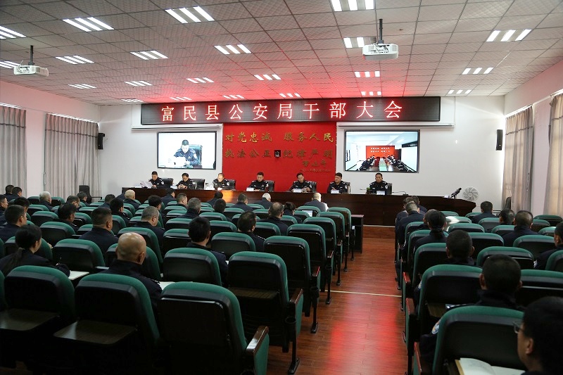 12月4日上午,富民县公安局组织召开干部大会,局党委班子成员、局机关全体民辅警在主会场参会,会议以视频形式开至交警大队、森警大队、看守所及各派出所。副县长、局党委书记、局长李杰同志出席会议并讲话。会议由局党委副书记、政委罗昌剑同志主持。