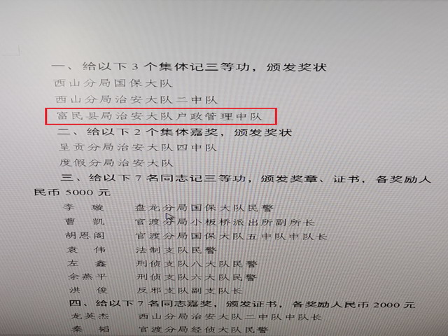 2023年3月,云南省公安厅将昆明市局和富民县局纳入全省公安政务服务“一窗通办”改革试点单位。在富民公安政务服务“一窗通办”改革试点工作中,富民县公安局治安管理大队户政管理中队以创新推动企业群众办实事,从“多窗”向“一窗”、从“专科”向“全科”转变,以户政窗口为基础,拓展“户政+其他警种业务”,结合实际在政务服务中积极探索“一窗通办”运行模式,深耕“一站式”公安政务服务沃土,通过优化服务平台、延伸服务触角、提升服务效能、打造专属品牌等方法举措,结出群众办事高效便捷的“满意之果”,荣获市局表彰集体三等功。