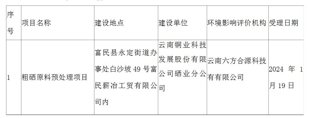昆明市生态环境局富民分局关于粗硒原料预处理项目环境影响评价文件受理情况的公示