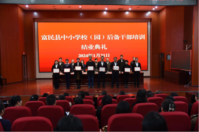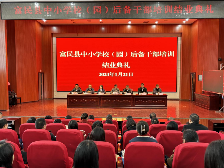 1月21日下午,为期7天的富民县中小学校(园)后备干部培训班结业典礼在永定小学报告厅举行。县人民政府副县长李黎,县教育体育局班子成员,全县中小学校(园)后备干部200余人参加。