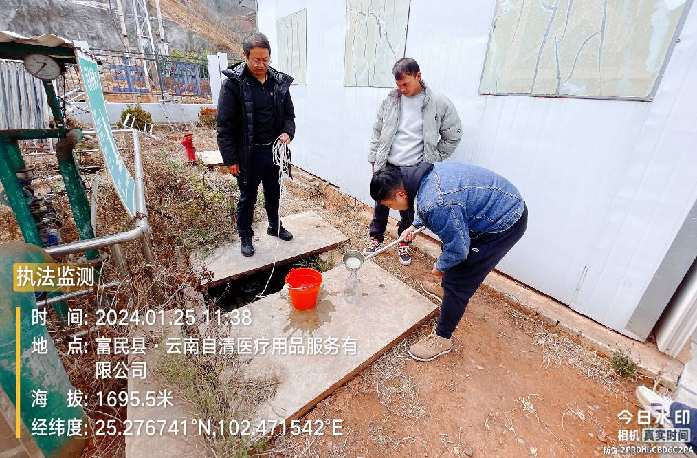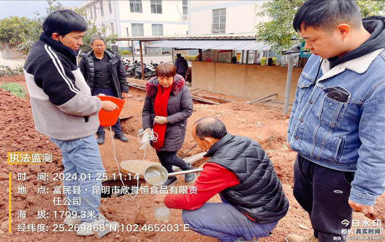 1月25日,富民县生态环境保护综合行政执法大队联合环境监测站对哨箐片区的云南自清医疗用品服务有限公司、昆明市欣誉恒食品有限责任公司两家企业开展监督性执法监测工作。