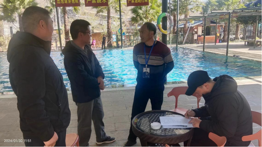 检查组先后到南西桥游泳池、明熙苑游泳馆等6家高危险性体育场馆(游泳池)和部分协会、俱乐部进行实地检查。重点检查游泳场馆清洗消毒、设施安全、救生员配备、器材配置、电气线路、安全出口、消防设施运行和维护保养情况。当场指出检查发现的安全隐患问题,并督促经营主体进行整改,履行好主体责任,确保安全生产措施到位、制度到人。
