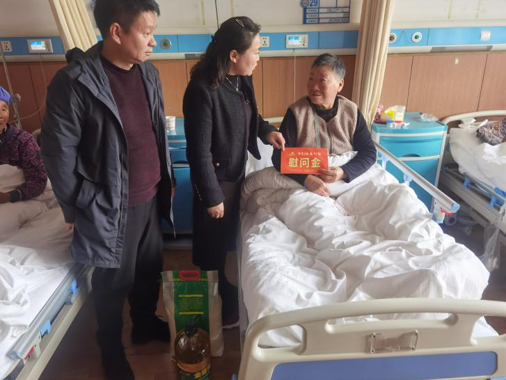 躺在病床上的烈属李阿姨激动的说:“感谢党、感谢政府的照顾,感谢军创企业对我的关心和关爱,你们能到医院看望我,我真的太感动了”。