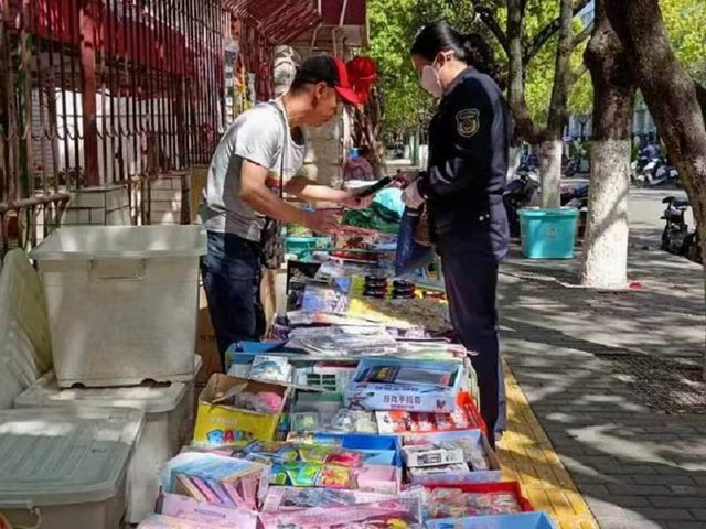 工作中,民警与各部门工作人员主要对校园周边文具店、玩具店、超市、摊贩为重点,重点检查“仿真手雷”“炸包”等存在安全风险的玩具。检查组工作人员对各个商铺的营业、食品安全、商铺内售卖的学生用品和玩具、消防安全措施开展检查,确保经营许可证在有效期内、进货渠道正规有效、售卖的物品在经营许可范围内。检查在售的食品是否属于“三无”产品、食品是否已过保质期等。查看商铺是否存在售卖非法出版物、盗版书籍以及向未成年人销售不利于青少年健康成长的产品,向商家强调不可以售卖“炸包”、“臭蛋”、“手雷”等可能危害未成年身心健康的违规玩具。检查了商铺的消防器材配备情况、灭火器材的使用情况,并对各负责人开展了消防安全技能培训。最后,民警对商铺负责人开展了法制宣传教育,要求每一位负责人都做到遵章守纪、诚信经营。