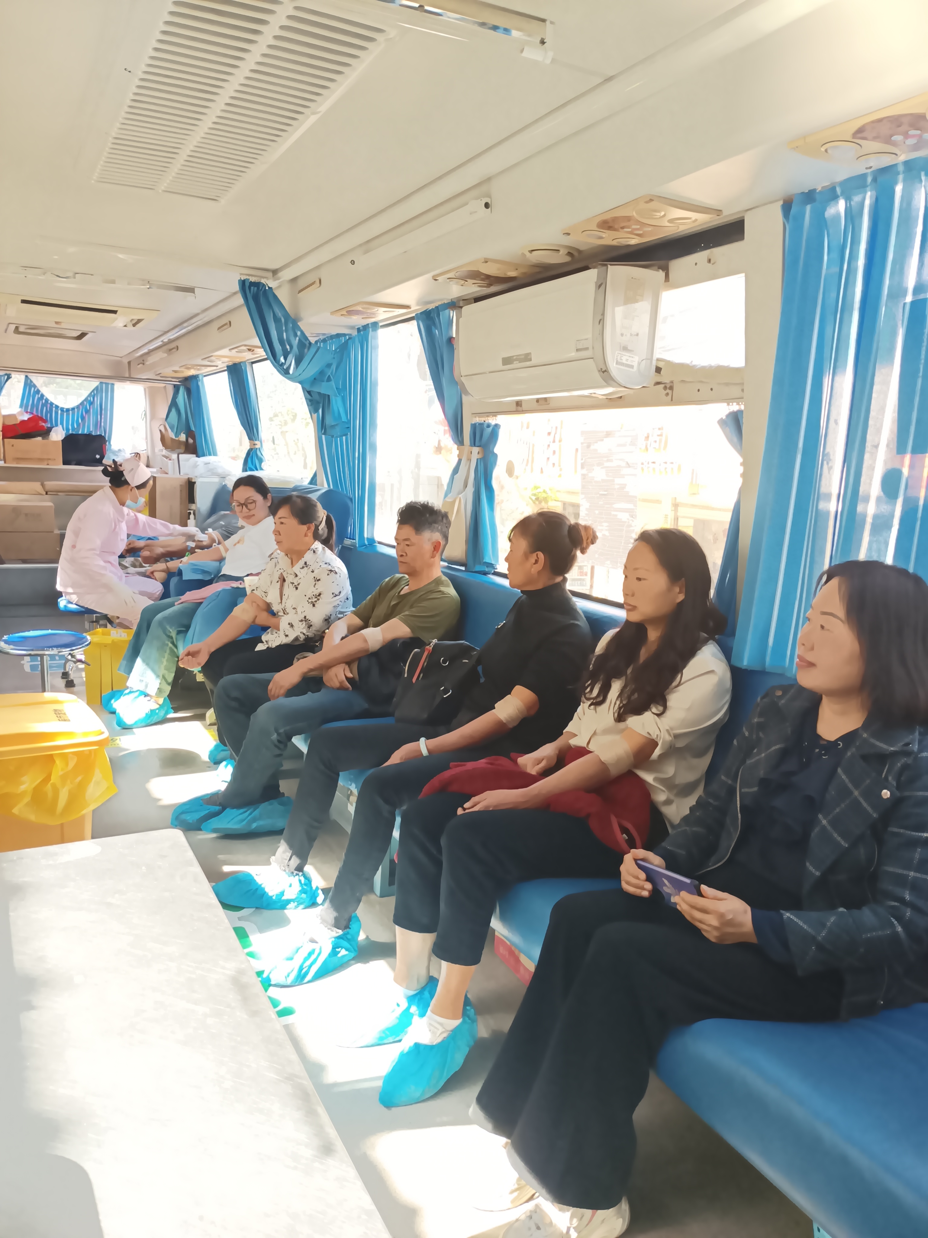 献血现场气氛热烈,在医护人员的指引下,前来献血的爱心人士依次完成填表登记、血液初筛等流程,整个活动秩序井然,各环节有条不紊进行。献血车上,随着衣袖的挽起、拳头的张合,涓涓热血通过管路流入血袋,承载着献血者的温暖心意和美好祝愿。献血完成后,医护人员贴心地提醒大家要多休息,少剧烈运动,注意饮食清淡。对于没献过血的群众来说,更多的是紧张和兴奋。对于献过血的群众来说更多的是坦然与从容。此次共成功献血324人,总献血量达95940毫升。