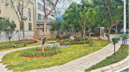 此次依托永定街(文昌路)口道路升级改造,将闲置空地建设为“小游园”是城市绿化和美化的一大亮点,“小游园”作为一类规模适度、形态多样的绿色空间,扮演着至关重要的角色。与大型公园相比,“小游园”凭借其小巧精致、高度开放及贴近民众生活的特性,在土地资源紧张的城市环境中,有效点缀城市风貌,这样的设计不仅美化了城市环境,提升了城市形象,还增强了市民的幸福感和归属感,促进了人与自然的和谐共处。目前,全县已建成“小游园”14个,正在建4个。