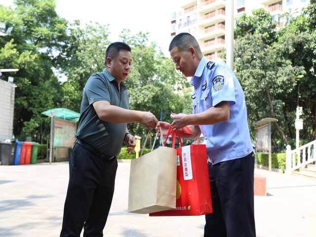 9月25日下午,在庆祝新中国成立75周年之际,昆明市总工会副主席何树升、富民县总工会常务副主席赵光俊、副主席彭慧丽一行到富民县局开展送温暖慰问活动,对富民县市级劳模代表、昆明市第二十一届劳动模范高树金进行慰问关怀,把工会组织的温暖送到公安一线。副县长、局党委书记、局长李杰参加慰问活动。