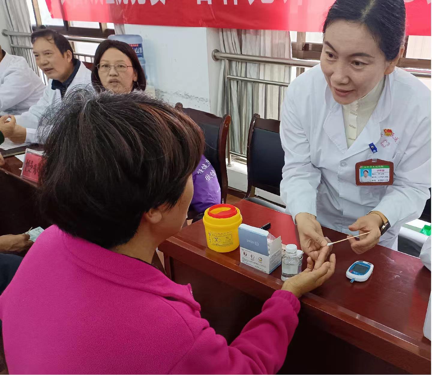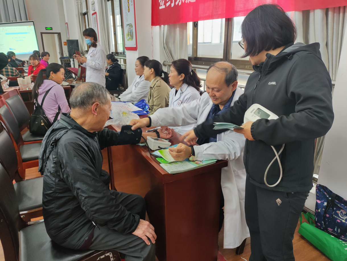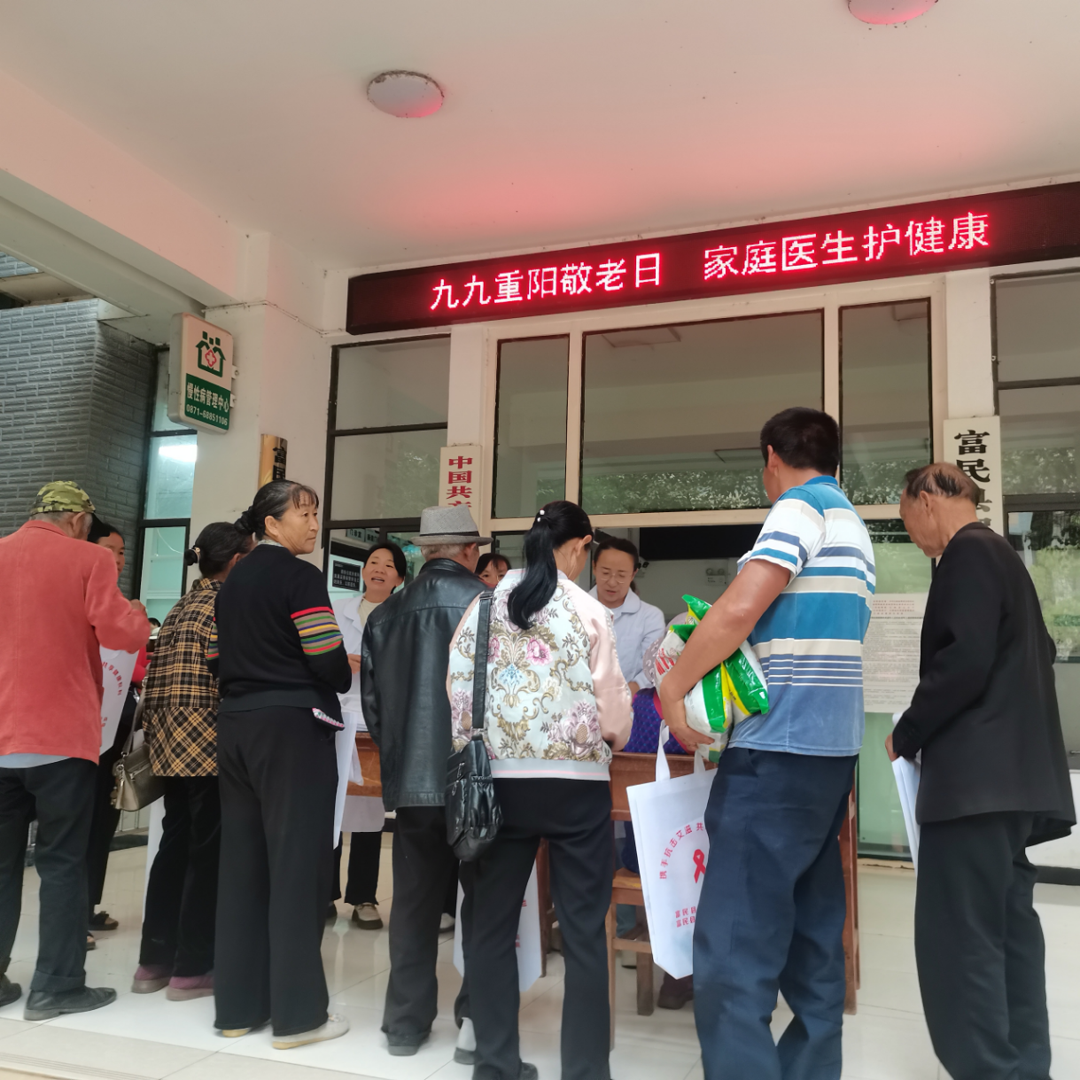 家医服务,情暖重阳。永定街道卫生院、大营卫生院、罗免卫生院组织家庭医生分别到富民县老年大学、富民县敬老院、人员密集场所进行家庭医生宣传及服务活动,为辖区居民群众、老年人免费量血压、测血糖,及宣传健康生活方式;家庭医生现场进行签约服务并通过发放宣传资料、现场讲解方式,让老年人知晓家庭医生签约服务的意义、服务内容,从而提高了老年人参与家庭医生签约的主动性和积极性。