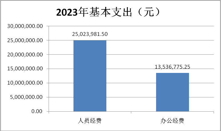2023年度用于保障富民县人民政府大营街道办事处机关、下属事业单位等机构正常运转的日常支出38,560,756.75元。其中:基本工资、津贴补贴等人员经费支出25,023,981.50元,占基本支出的64.89%;办公费、印刷费、水电费、办公设备购置等公用经费13,536,775.25元,占基本支出的35.11%。与上年对比基本支出减少9,170,533.17元,下降19.21%,主要原因分析是乡镇财政所改革、人员分流导致街道人员减少及各种办公经费减少。