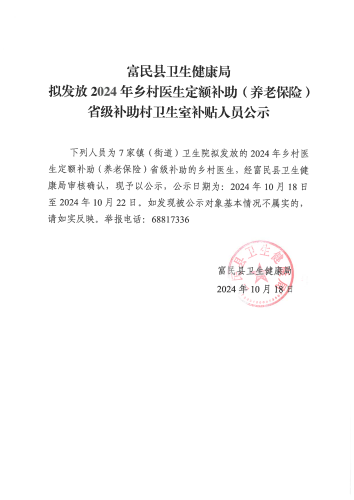 富民县卫生健康局拟发放2024年乡村医生定额补助(养老保险)省级补助乡村医生人员名单