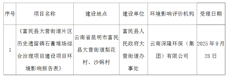 昆明市生态环境局关于2025年9月28日建设项目环境影响评价文件受理情况的公示