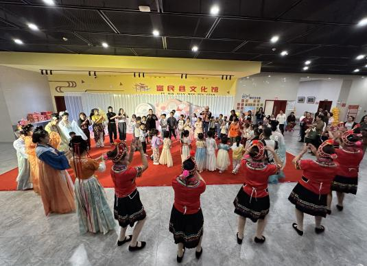 夜幕降临,县文化馆二楼化身为流光溢彩的文艺展演空间。汉服走秀作为开场节目,大小模特身着不同朝代的传统服饰,步履从容、仪态端庄,配合规范的传统礼仪演示,生动展现了中华“礼仪之邦”的文化底蕴。与此同时,“遇见云南”夜间民族特色广场舞及“三跺脚”民族街舞快闪活动同步上演,文艺团队与志愿者们活力四射的表演,不仅点燃了现场气氛,也通过线上线下联动传播,吸引众多年轻人参与,为富民县的夜间文旅注入了青春动能。