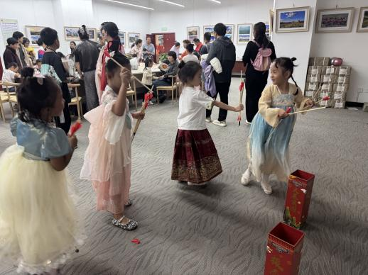 当日,“爱党爱国爱家乡”少儿绘画与手工作品展览在县文化馆和图书馆同步开展。孩子们用纯真的笔触和灵巧的双手,创作出一幅幅充满想象的作品,传递出对家乡和祖国的真挚情感,吸引了不少市民驻足欣赏。图书馆门前设置的“月亮写诗”互动打卡区也格外受欢迎,大家纷纷提笔留言,以诗意表达对双节的美好祝福,为节日增添了一抹温馨雅致的情调。