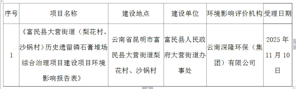 昆明市生态环境局关于2025年11月10日建设项目环境影响评价文件受理情况的公示