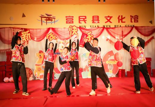 当天,“旧岁终圆满·新元启华章”美术书法摄影作品展在县文化馆、图书馆同步开展,并将持续至2026年1月3日。展览汇集各类作品,主题聚焦富民年度发展成就与群众新年期许,展现县域发展风貌与文化魅力,吸引市民驻足观赏。夜幕降临,县文化馆二楼化身为流光溢彩的文艺展演空间,舞者们轮番登场,用精彩的表演将新年的活力与祝福传递给每一位观众。《北京的京山上》《好运全都来》以灵动的舞姿与浓郁的民族风情点燃现场气氛;温情满满的《中华全家福》勾勒出阖家团圆、国泰民安的美好图景;传统花灯《打渔收子》则轻盈柔美、传统韵味十足,让观众感受到本土文化的独特魅力,赢得阵阵掌声。