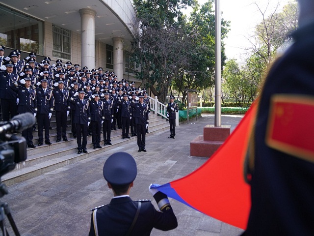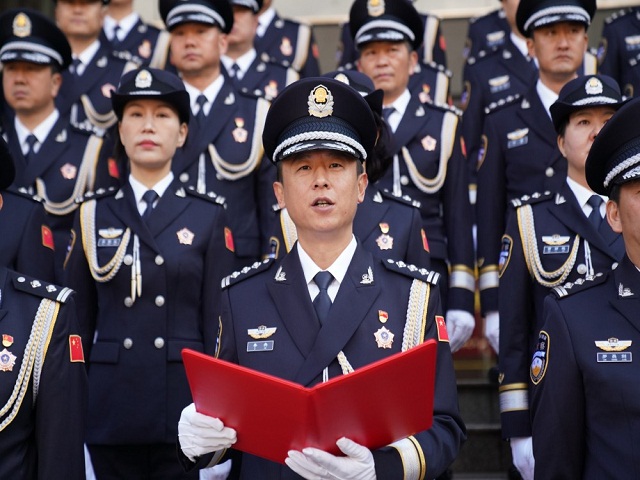 旗帜指引方向,誓言凝聚力量。1月9日上午,在县局行政楼前举行“升国旗 展警旗”仪式。“出旗!”随着局党委副书记、政委罗昌剑的一声口令,护旗手迈着铿锵有力的步伐入场,全体民警身着警礼服,精神饱满、庄严列队,目光坚定望向国旗。“起来!不愿做奴隶的人们……”激昂雄壮的国歌声中,五星红旗冉冉升起,全体民警面向国旗庄重敬礼;“我是中国人民警察,我宣誓……”熠熠警旗下,副县长、局党委书记、局长李杰带领全体民警高举右拳,庄严宣誓,铮铮誓言深刻诠释着“对党忠诚、服务人民、执法公正、纪律严明”的坚定信念。