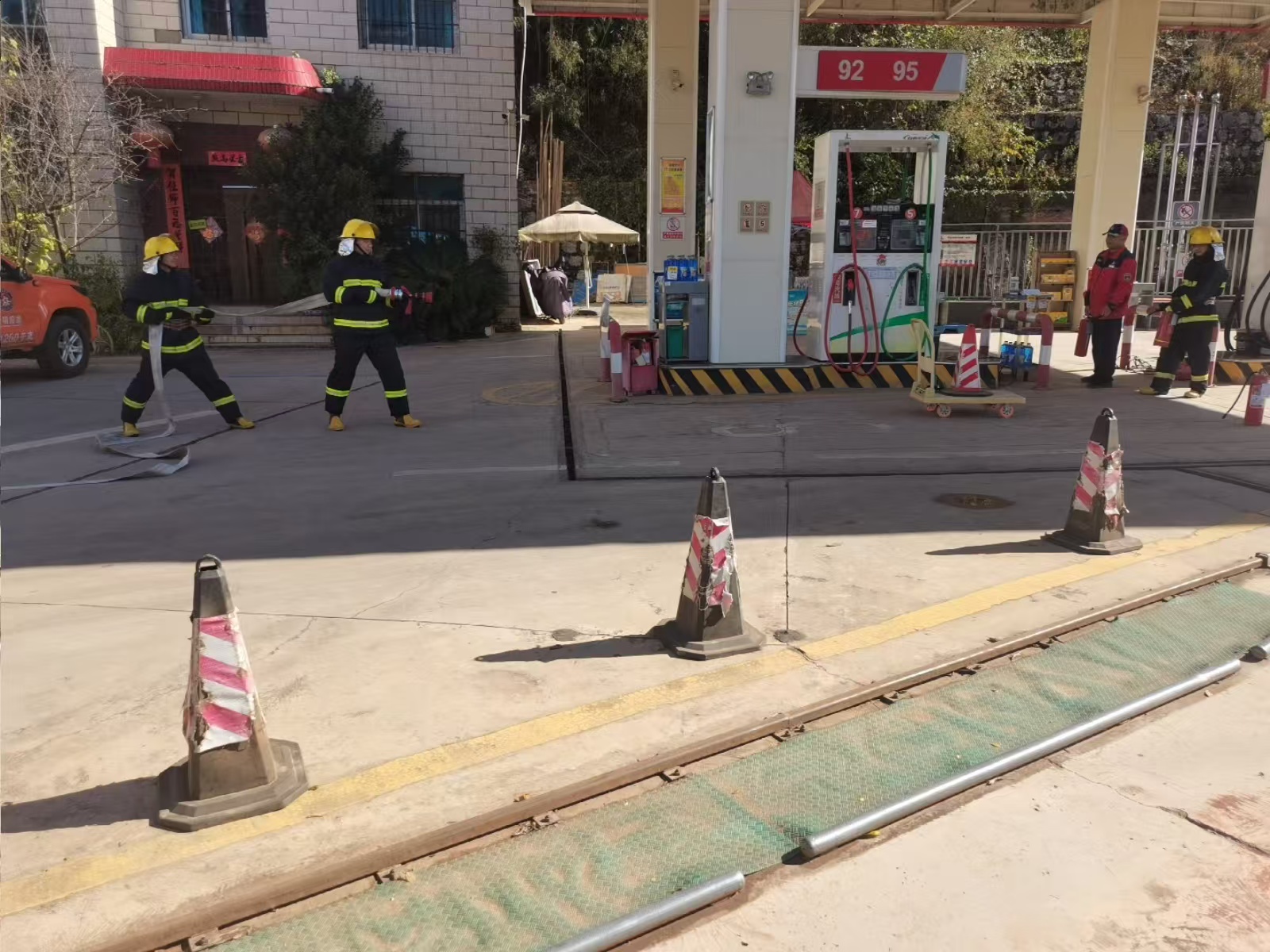 消防安全无小事,防患未然是关键。罗免镇以加油站安全防护为重点,精准开展消防演练与专项检查,组织罗免专职消防队前往中石化信誉加油站,开展针对性消防安全演练。重点开展灭火器实操、消防水带连接等科目演练,通过以练促战,提升消防队与加油站工作人员的协同处置能力和应急响应效率。演练结束后,立即联合镇应急消防救援岗,直奔中石化信誉加油站、全中加油站开展安全核查。严格对照危险化学品经营场所安全规范,逐项核查两家加油站的安全生产责任制落实情况、从业人员安全培训记录,逐一排查灭火器、消防沙、应急照明灯等消防器材的完好有效性及摆放规范性。此次检查共发现应急物资摆放不规范、值班记录不完整等问题4项,均现场下达整改指引。