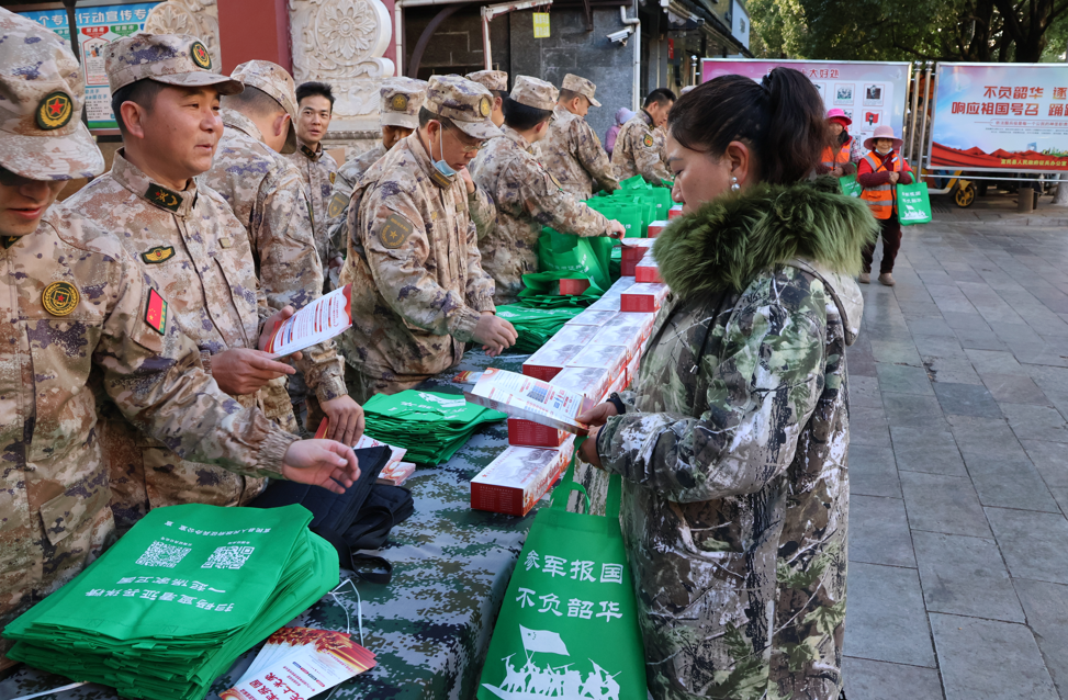 集中宣传活动当日,各镇(街道)武装部迅速响应,联动开展宣传活动,专武干部带头深入集市、村社区,通过悬挂横幅、发放手册、现场讲解等方式,将征兵政策送到群众“家门口”。组织村干部、民兵骨干入户走访适龄青年家庭,深入了解青年思想动态、家庭意愿和现实顾虑,因人施策开展“一对一”思想动员和政策宣讲,切实打通征兵宣传“最后一公里”。