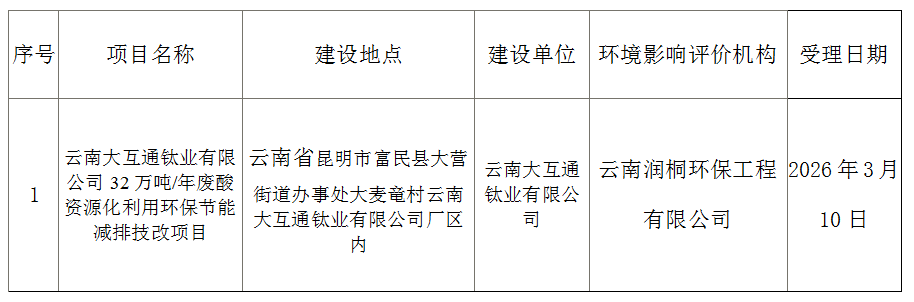 昆明市生态环境局关于2026年3月10日建设项目环境影响评价文件受理情况的公示