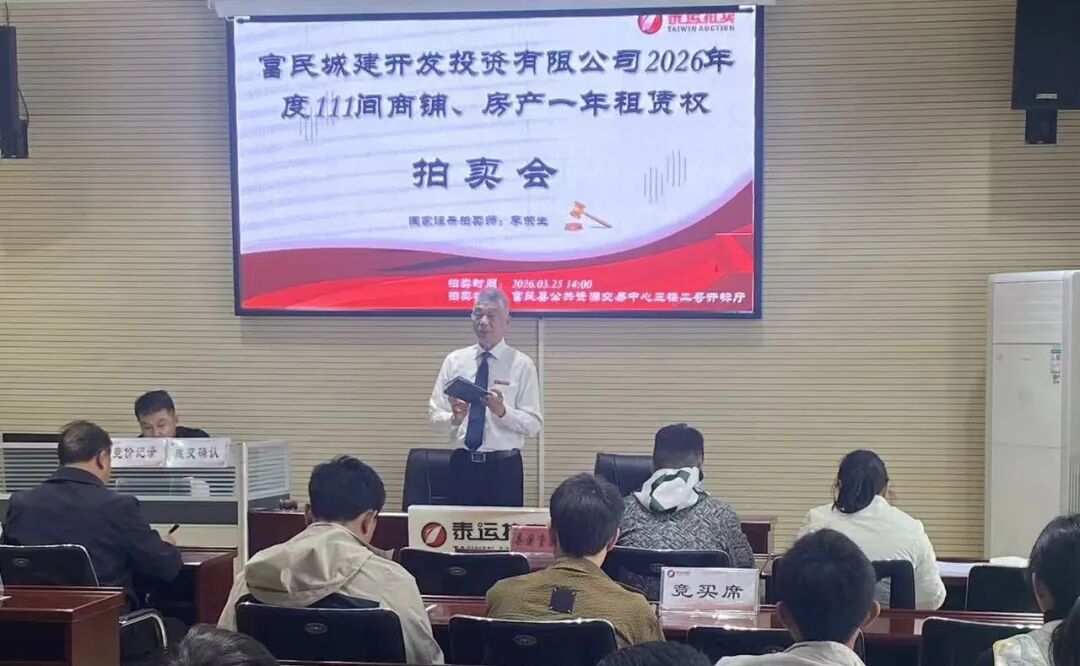 3月25日,由富民城建开发投资有限公司委托、云南泰运拍卖有限公司承办的城区111间商铺房产租赁权拍卖会,在富民县公共资源交易中心三楼二号开标厅成功举行。此次拍卖会以盘活国有资产为抓手,是我县优化营商环境的务实行动,也是以公共资源交易小切口擦亮“富企来”营商环境品牌的生动实践。